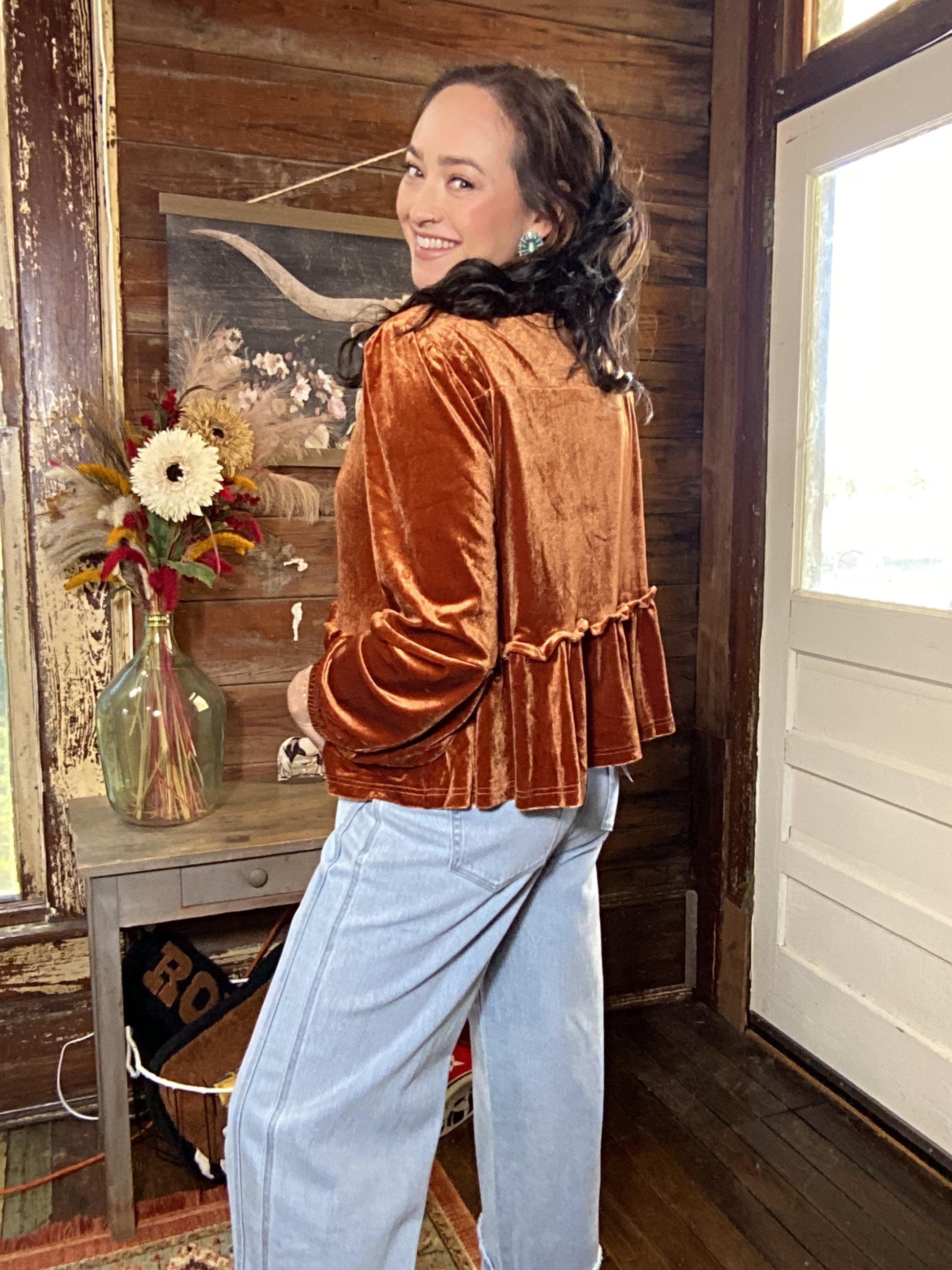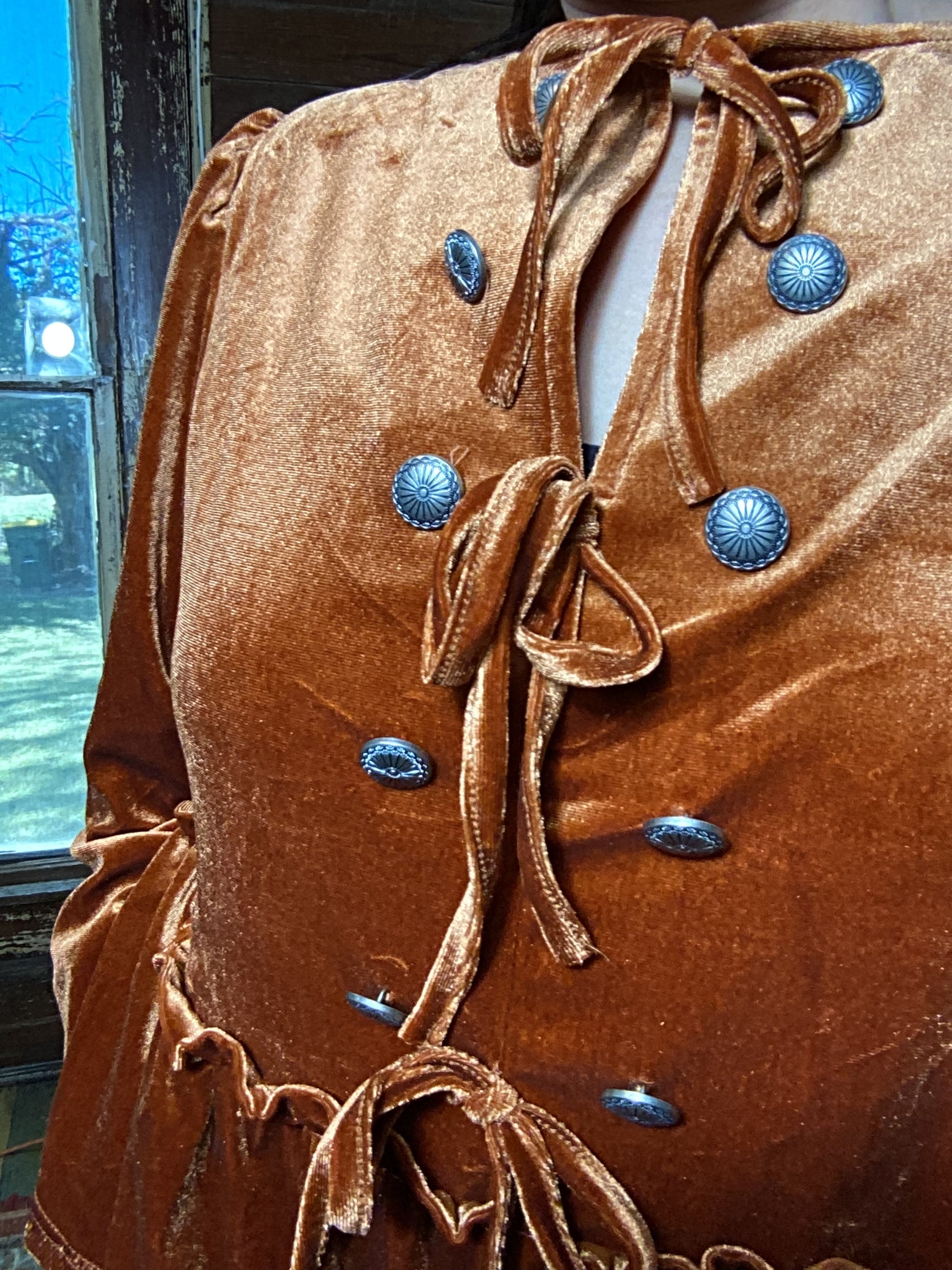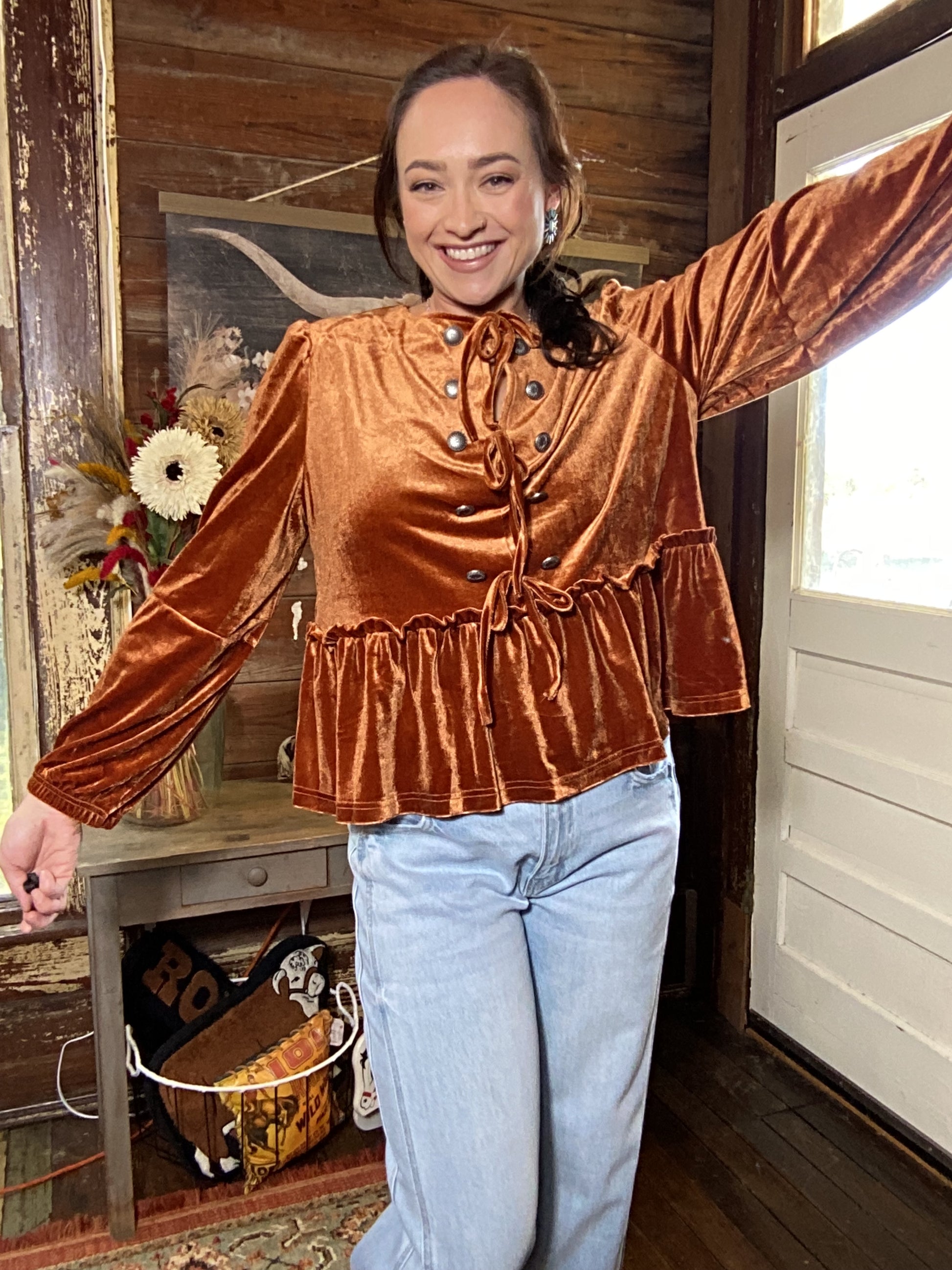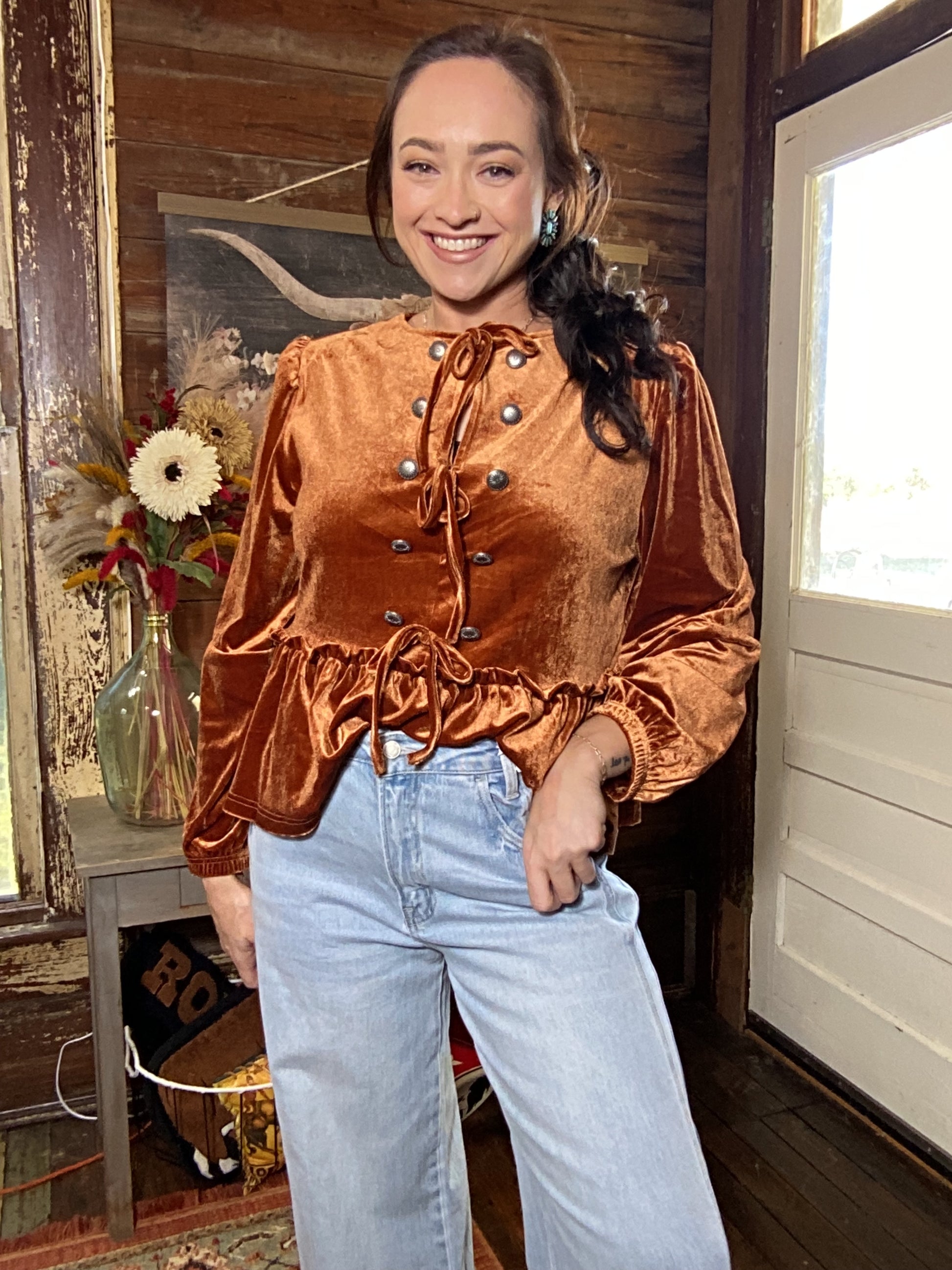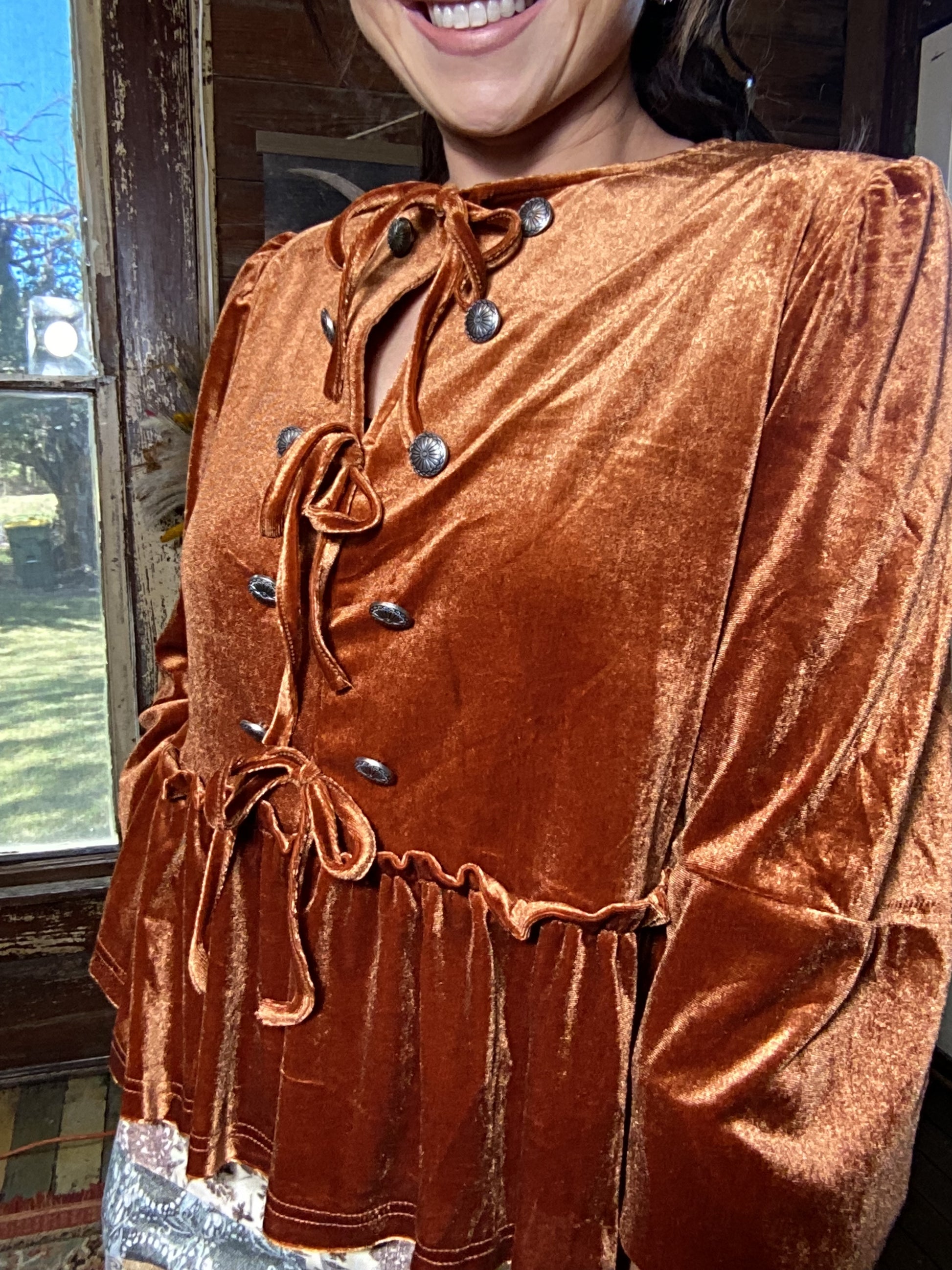 Super soft velvet front tie blazer with gorgeous decorative stamped silver buttons