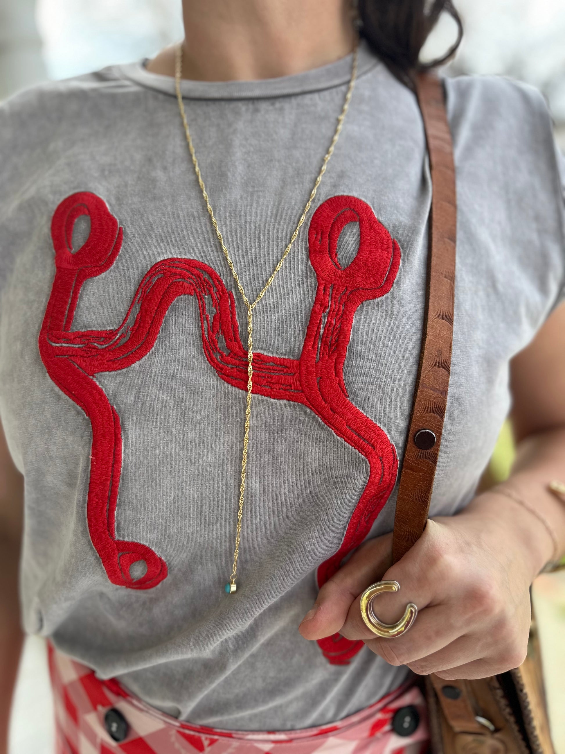 Grey mineral washed tank with red raised long shank bit embroidered