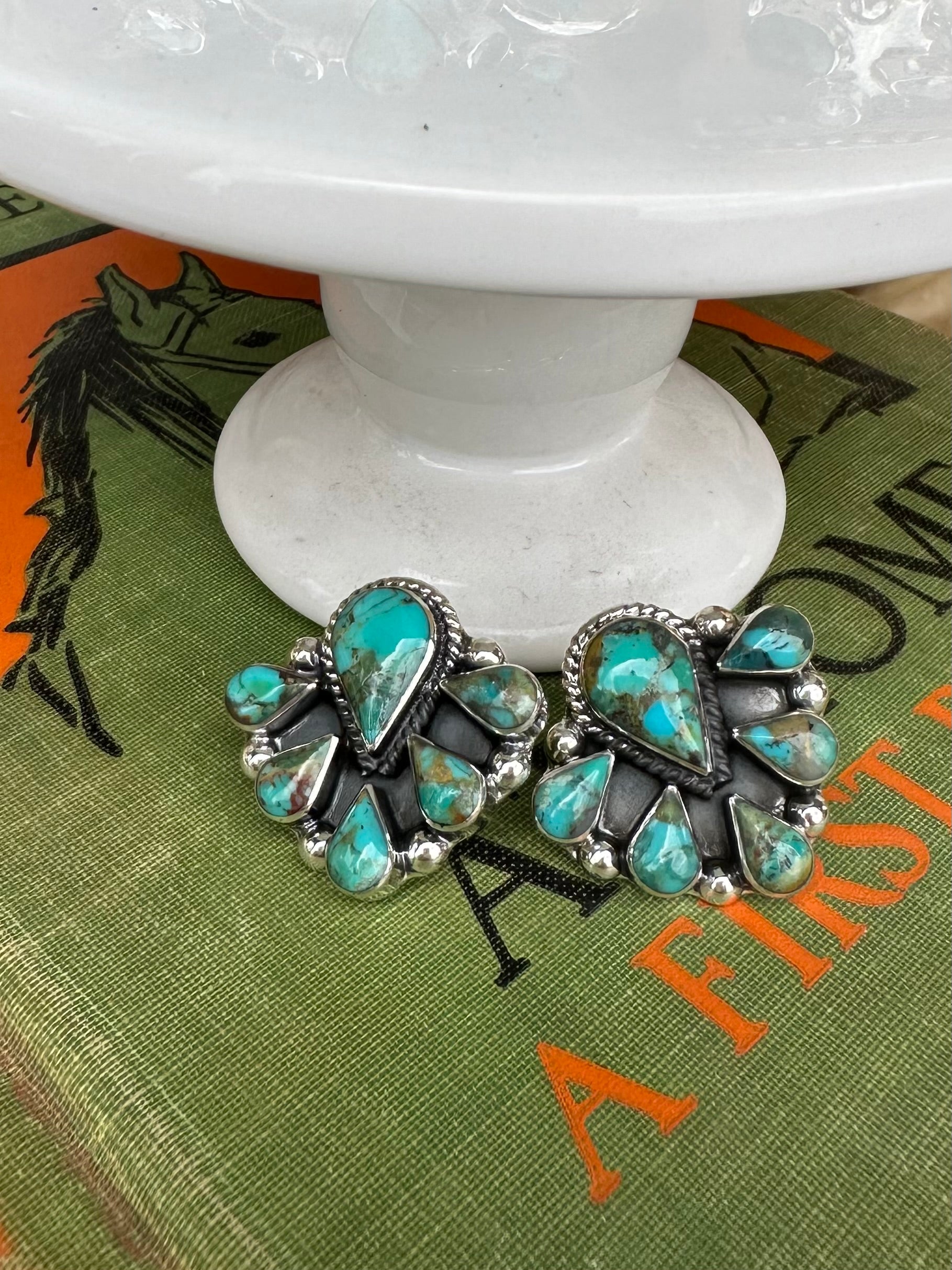 Sterling Silver and Kingman 6 stone teardrop cluster earrings.